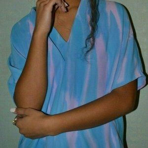 New painted Silk Vince shirt popover blouse dolman caftan top pink blue striped