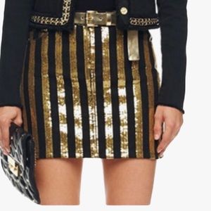 Luxury Michael Kors Black Denim Gold Striped Sequin Mini! Gold Button Stamped MK Logo Closure! Great Wardrobe Statement Piece when You Need to Stand Out In The Crowd! Special Occasion Attire!