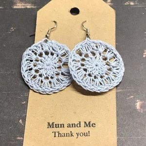 Blue crochet circle dangle earrings handmade by MunandMe