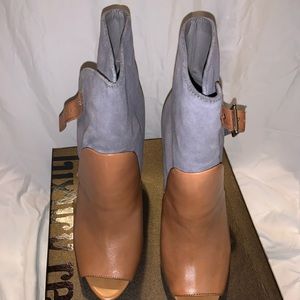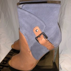 Luxury Rebel Peep Toe Booties 39.5 Blue Tan