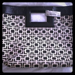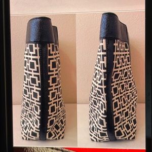 This black and white,canvas & leather handbag mini tote, with red interior is very chic. Gives you that New York city trendy style. ♥️