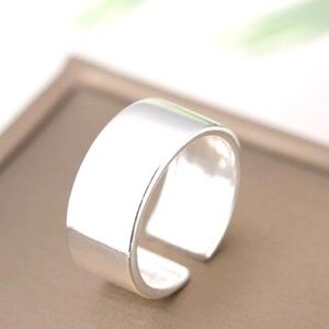 Simple wide sterling silver cuff ring, adjustable