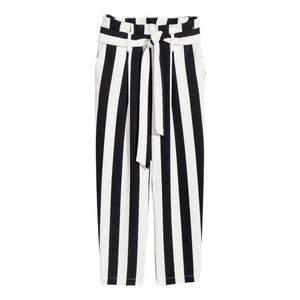 H&m black and white striped belted pants paperbag trousers