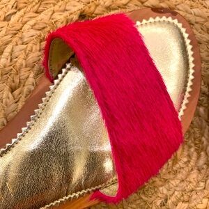 Fun pink faux fur flat slides, size 37, worn 3 times. Purchased at Red Balloon in Newport Beach. They add a pop of color to any outfit!