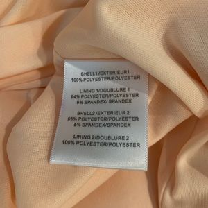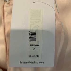 Badgley Mischka Floor Length gown in Pink. 21” back zipper and 24” back slit. Lower fabric is almost cushiony. Fully lined. MSRP $249. Listed at an unbelievable price of $38 !! Sheer upper fabric with lining beneath. Top Shell 100% Polyester. Bottom Shell 95% Polyester 5% Spandex, Lining 94% Polyester 6% Spandex. Gorgeous Dress perfect for prom , wedding, or formal event. 21” back zipper and 24” bottom slit.