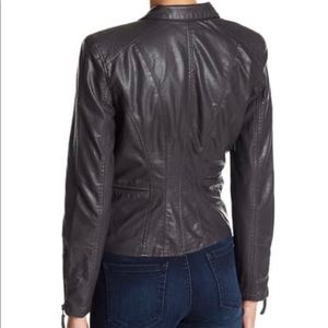 BLANK NYC FAUX LEATHER FITTED MOTO JACKET