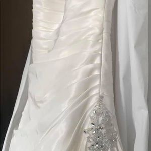 Brand New with tags still attached. Only worn for try ons. Bought from Bridal shop off the rack. Size 16. Corset back so it will fit a few sizes up or down. Dress is well made.