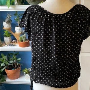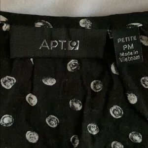 ☀️🌜✨EUC Apt 9 black top with white circles. Shirt has a tie on the left hem. Super cute top can be worn casual or dressy. Size petite medium ☀️🌜✨