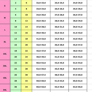 Size chart in last photo