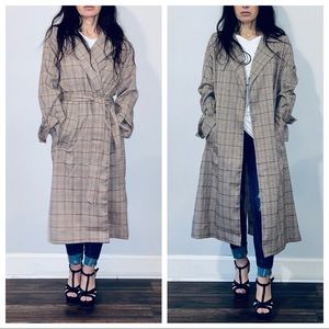 Fabulous belted plaid side pocket trench coat