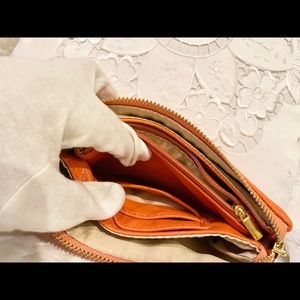 This wristlet great for your quick errands. It is so spacious and have 5 compartments . Zippy coin pocket and 6 card slots. The strap handle is detachable.It measures 7 “ width,4” height and 1” side width.This is new with tag .
