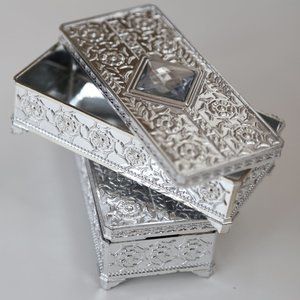 NWT Metal carved Hand Mirrors & Silver carved box