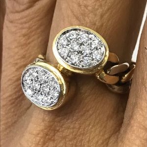 18k 2-tone Bypass-design Pavé-set Diamond Link-chain Ring (.5ct TW, VS/E). Size 7. 11.3gr. Matching Bracelet sold separately. Will sell for $10K as set.