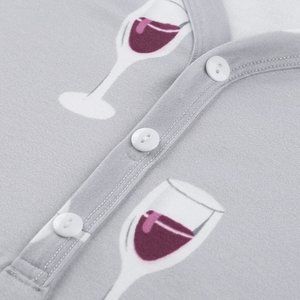 Adorable & SUPER comfy 2-piece pajama set for Ladies. Gorgeously designed & adorned with wine glasses. PERFECT pajamas for any wine lover to lounge around in. Much loved Birthday or Christmas gift! 95%Polyester+5%Spandex. See size chart in pictures for measurements. From Smoke free home. Check out my other listings to bundle and SAVE on shipping costs. Boutique item/comes with plastic poly bag.