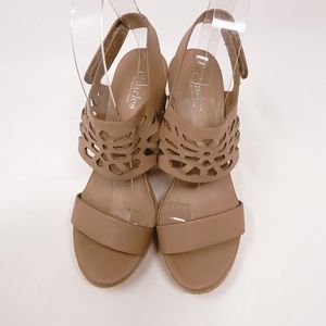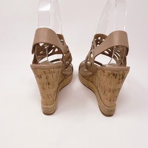 Charles By Charles David Women’s Leather Taupe Laser Cut Wedge Espadrille Sandals