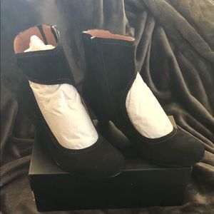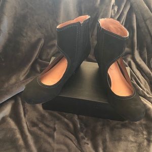 Cute boot style shoe. Black suede. Side zipper. 2” heel