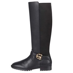 New in box. Size 10. The Farrah wide-calf riding boots from COACH blend an equestrian-inspired profile and signature hardware for added flash.
