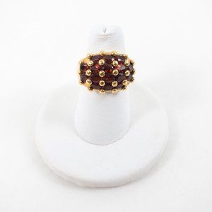 NWOT Vintage real Mozambique Garnet cluster ring - yellow gold plate over .925 solid sterling silver. 16.00 ct. t.w. cushion cut oval garnets gemstones & balls. Delicate & unique, fab Valentine’s Day or birthday gift! Garnet is January Birthstone & Ruby is July (same color). NWOT