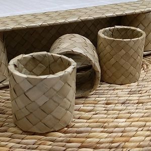 Pier 1 Natural Woven Napkin Rings, Set of 6 with storage box. In great condition!