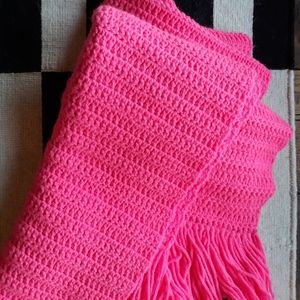 Handmade knit wrap or scarf in Neon coral pink. Excellent condition, no flaws or wear