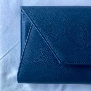 Elegant blue envelope clutch(12”x7”) with detachable chain strap (45”).