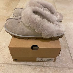 portion of the inner heal lining has worn off. They still have a lot of life left in them. Cleaned and sanitized. Paid $129 new. Comes with original box.