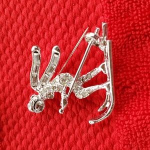 Listing is for Vintage Monet Rhinstone Skiier Brooch