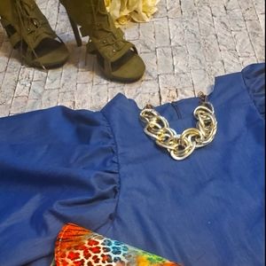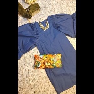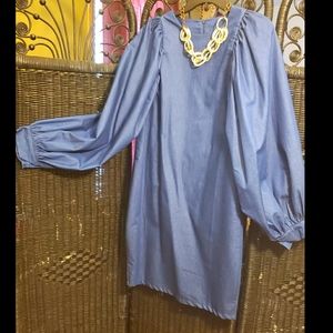 Balloon sleeve denim dress back zip down and small split pit to pit :17 1/2 in Hip :18 1/2 in
