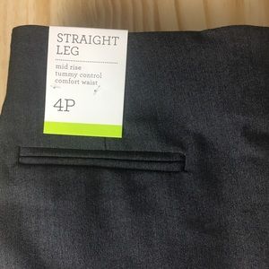 Style & Co. Straight Leg, pull on styling, mid rise tummy control panel, comfort waist pant, color gray, size 4P. New with tag.