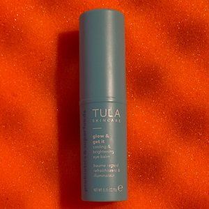 It's time to glow! Tula's probiotic and superfood-packed Glow & Get It Cooling & Brightening Eye Balm instantly cools, hydrates, and brightens the look of undereye dark circles. The revolutionary formula also fills in the look of fine lines around the eyes to give you that "I woke up like this" look. Apply under or on top of makeup for a natural, dewy glow. Even better, the easy-to-use, portable packaging means you can get that lit-from-within glow on the go.