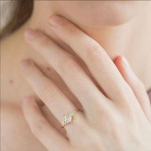 NEW💍18K YELLOW GOLD DIAMOND PRINCESS RING