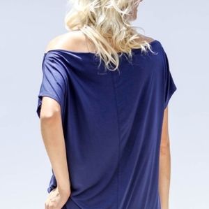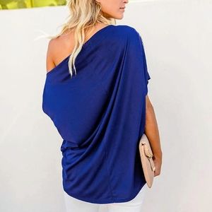 Classy boat neck oversized off shoulder twist knot tunic blouse