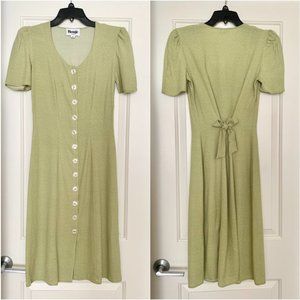 French style. Short sleeves, pretty pearl-like buttons and flowing cut. Midi shirt dress, short sleeves. 55% rayon 45% viscose. Made in Portugal.