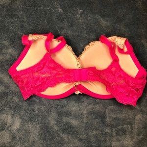 Stunning VS lace bra in bright pink and light pink with rhinestone studs! Padded cups. Excellent condition, barely worn. Size 32C. Non-smoking home.