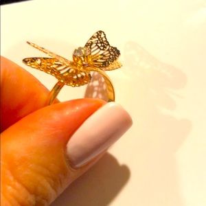 A high-polish ring featuring a 2D butterfly 🦋 charm with a centered CZ gem accent stone. Size 7. Comes with pouch & gift box 🎁