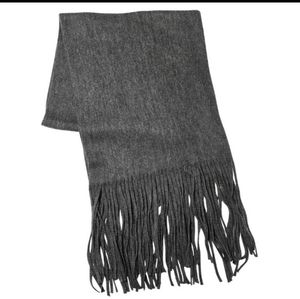 Lucky Brand solid brushed scarf, never used still in wrapper, wrapper has been opened , a wrap-around silhouette and tassel ends make for a stylish scarf, color is gray