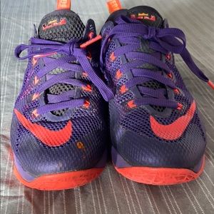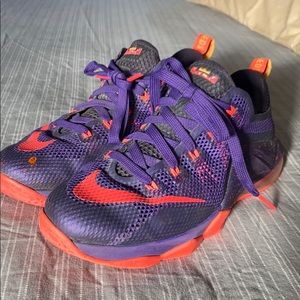 Youth basketball shoes. Lebrons size 5.5. Purple and orange. Small spot on toe