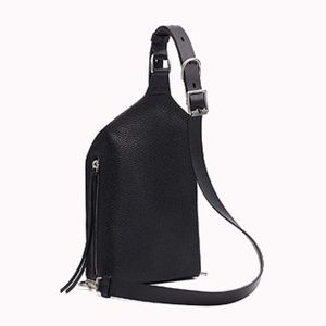 Essential Elliot bag redone in a sling pack style and in soft pebbled leather. Throw it over your shoulder cross body and go