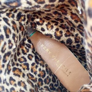 Very Volatile Raspy tan vegan faux leather mid calf western cowgirl boots. Almond toe. Embroidered side panels. Pull on style. Gold tone heel hardware. Lightly cushioned insole. Leopard print microfiber lining. Chunky stacked block heel.