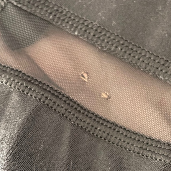 Very soft and comfortable leggings. With mesh detail. There is a few very small holes in one part of the mesh as pictured.