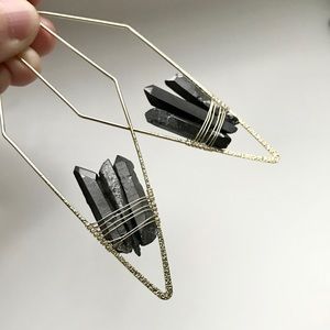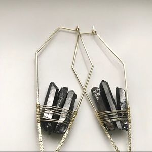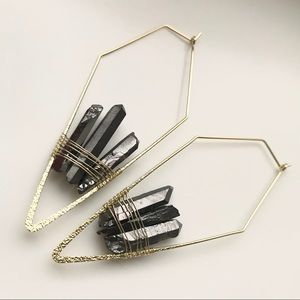 Geometric Quartz Crystal Wired Hoop Boho Earring