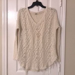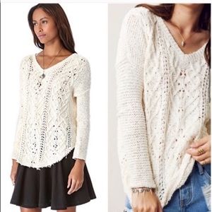 Free People Cross My Heart Distressed Cable Knit Sweater
