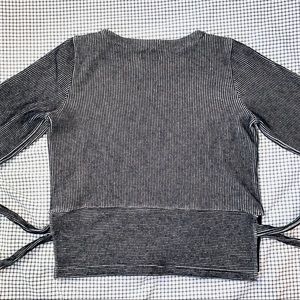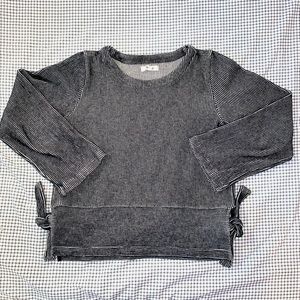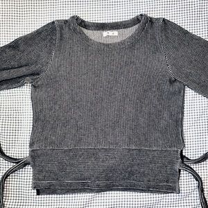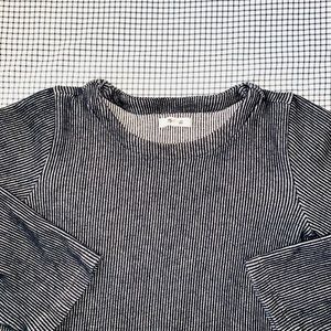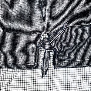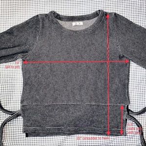 NWOT - washable, cotton, two-tone contrast striped textured knit, adorable double slit adjustable side tie detail on the hem, scoop neck, long sleeves, can be dressed up or down