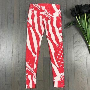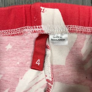 Good condition. Minor fading. Stretchy. Size tag says 4 but fits like an XS/XXS. Waist 11.5". Rise 7". Low-rise. Hip 14". Inseam 25". Cotton, Elastane.