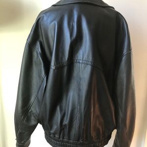 Men’s Bally Italian black leather vintage bomber jacket. Excellent condition. One inside pocket. Two outer pockets that have a hidden snap. European size 52. US size large. Dry clean only. No trades.