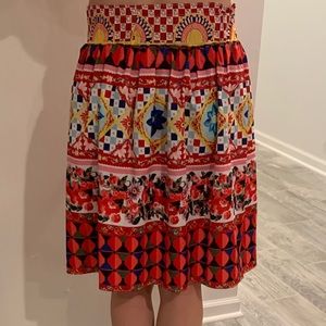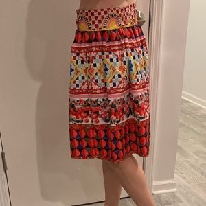 Women's multi-color pattern skirt in perfect condition, never worn. Poly blend (feels like silk). Elastic waist