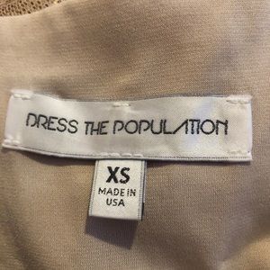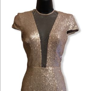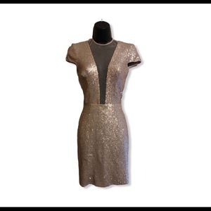 EUC Dress by Dress the Population. Light gold sequined. Deep v-neck. Worn one time. Polyester/spandex blend. Size xs