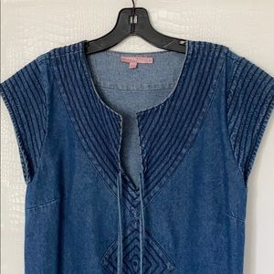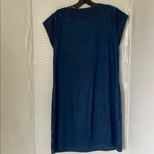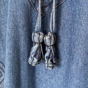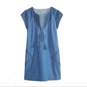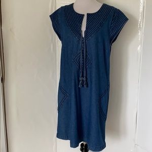 Charmed with bohemian flair, this denim dress is an adorable Spring must have! Worn once. PERFECT CONDITION! Medium-weight denim in a relaxed shift silhouette is accented with stitching details, side pockets and tasseled ties. Size Small.
