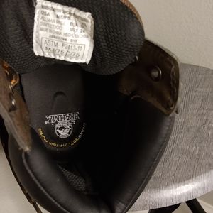 Pre-owned Brahma brown leather steel toe work boots in size 5.5. Shaft height 5" and the circumference is 14". In excellent condition.