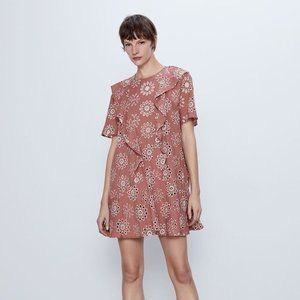 NWT Zara Marsala Embroidered Mini Eyelet Dress